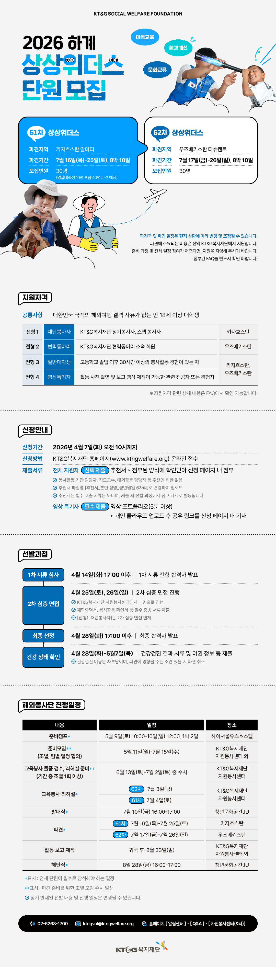 | 791 | 2026년 하계 대학생 해외봉사단 [상상위더스] 모집 state | 2026-03-13 ~ 2026-04-07 | 530 |