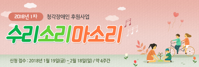 ① 알림센터 ▷ 새소식 ▷ <2018년 1차 「수리소리마소리」청각장애인 후원금 신청 안내> 게시물 참고