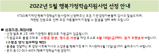 2022년 5월 행복가정학습지원사업(4월 신청기관) 선정발표